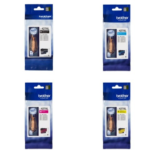 LC427XL high capacity, 4 cartridge set of Brother Original ink cartridges. Set includes 1 each of Black, Cyan, Magenta & Yellow ink cartridges. Manufactured by Brother to offer the highest print performance for your Brother printer that uses these series cartridges.